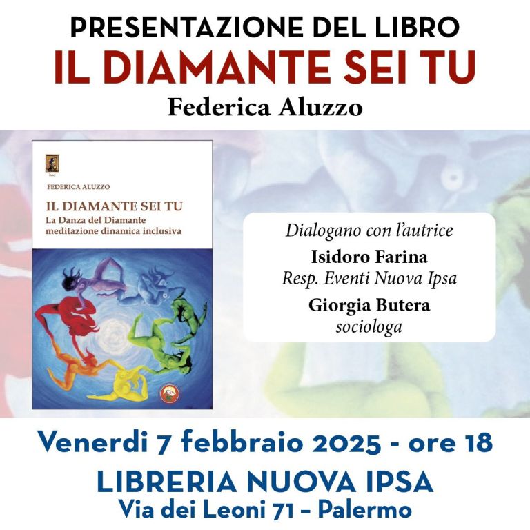 Ci siamo! E’ stato pubblicato il mio nuovo libro: Il DIAMANTE SEI TU: La Danza del Diamante meditazione dinamica inclusiva, Ed. tipheret distribuito a livello nazionale. Venerdì 07/02/2025 farò la prima presentazione presso la libreria Nuova Ipsa. Il libro è un aggiornamento ed ampliamento del precedente; presenta approfondimenti sulla metafora del diamante, sui simboli, sugli elementi naturali e la parte finale contiene ESPERIENZE NEI DIVERSI AMBITI DI APLLICAZIONE (settore scuola, immigrati, disabili, anziani, bambini ecc..) e TESTIMONIANZE di molte persone che hanno partecipato al percorso della Danza del Diamante. Il libro può interessare anche chi non si occupa strettamente di danza per i molteplici spunti che dà relativamente alla crescita interiore. E’ molto interessante e aiuta a contattare la propia Luce interiore.