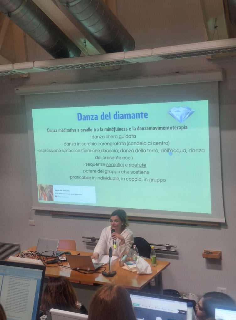 La Prof.ssa e psicologa Federica Spena ha introdotto la Danza del Diamante al TFA Sostegno di Palermo, come attività dinamica inclusiva che può aiutare gli alunni con disabilità in tutte le dimensioni di sviluppo previste da PEI. Un paragrafo approfondito sui benefici è riportato nel mio libro: IL DIAMANTE SEI TU. Lo consiglio ai docenti di sostegno.