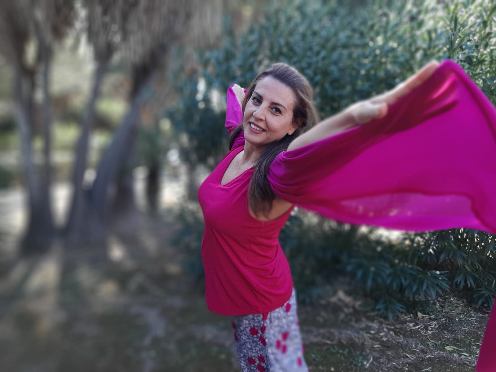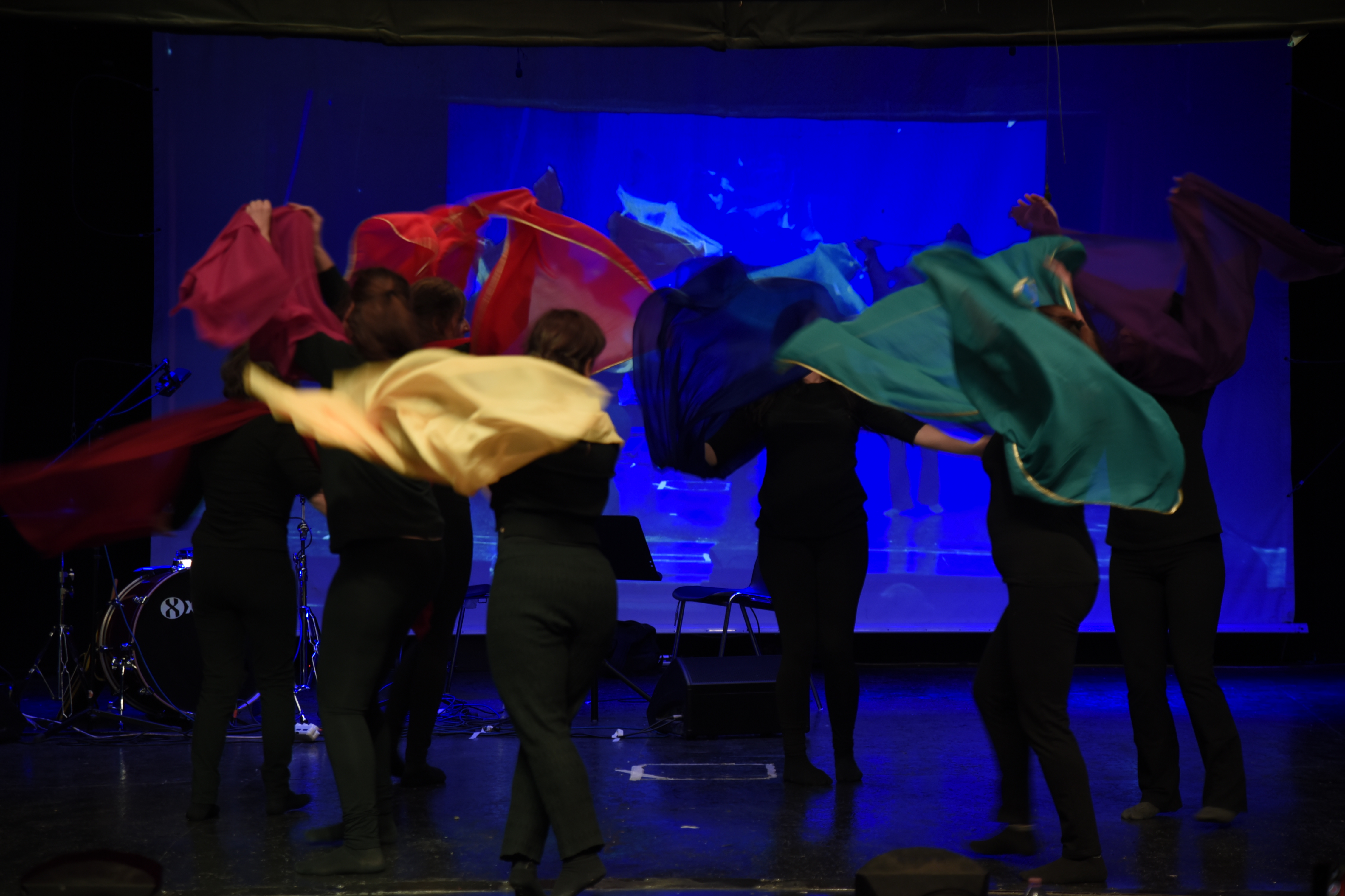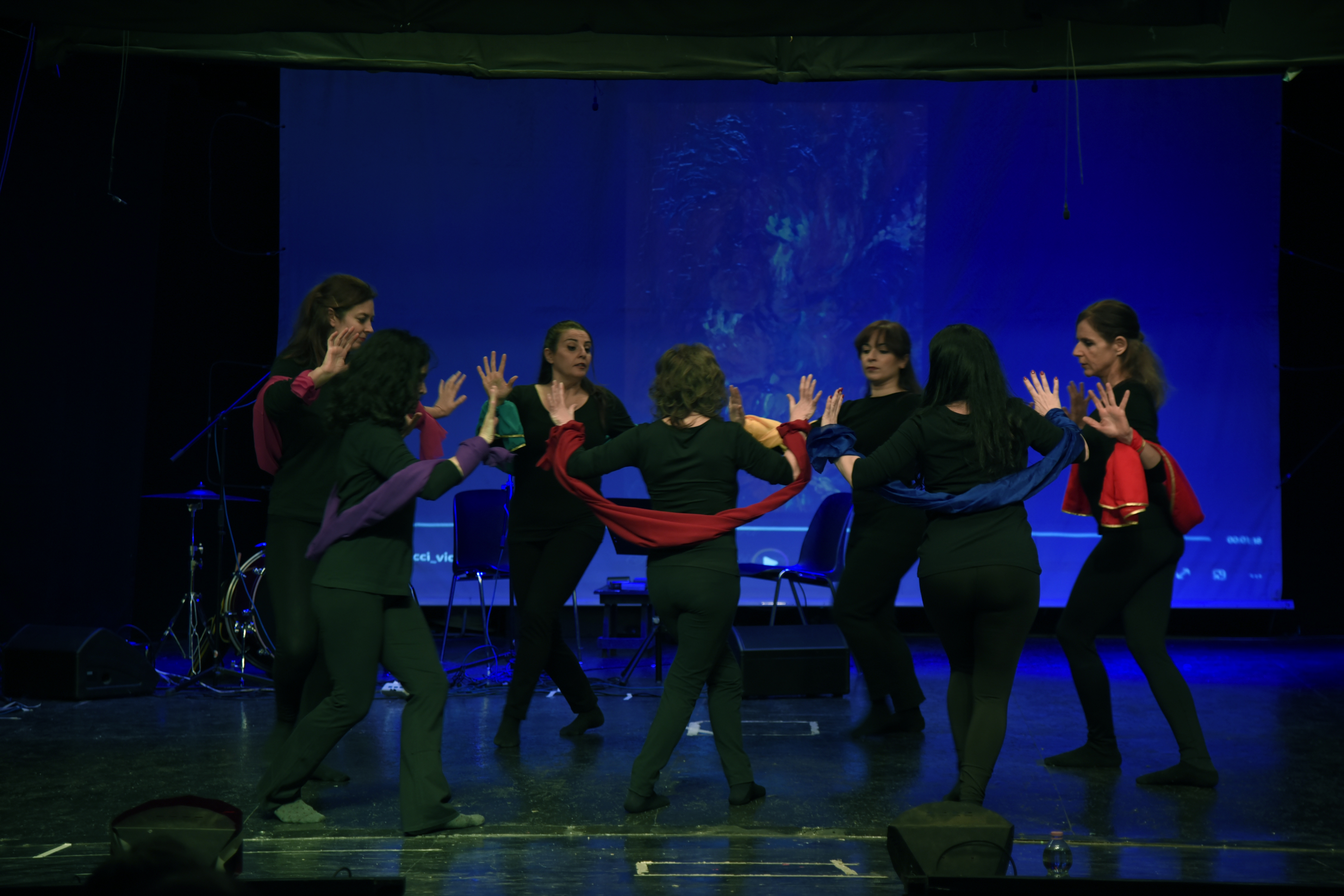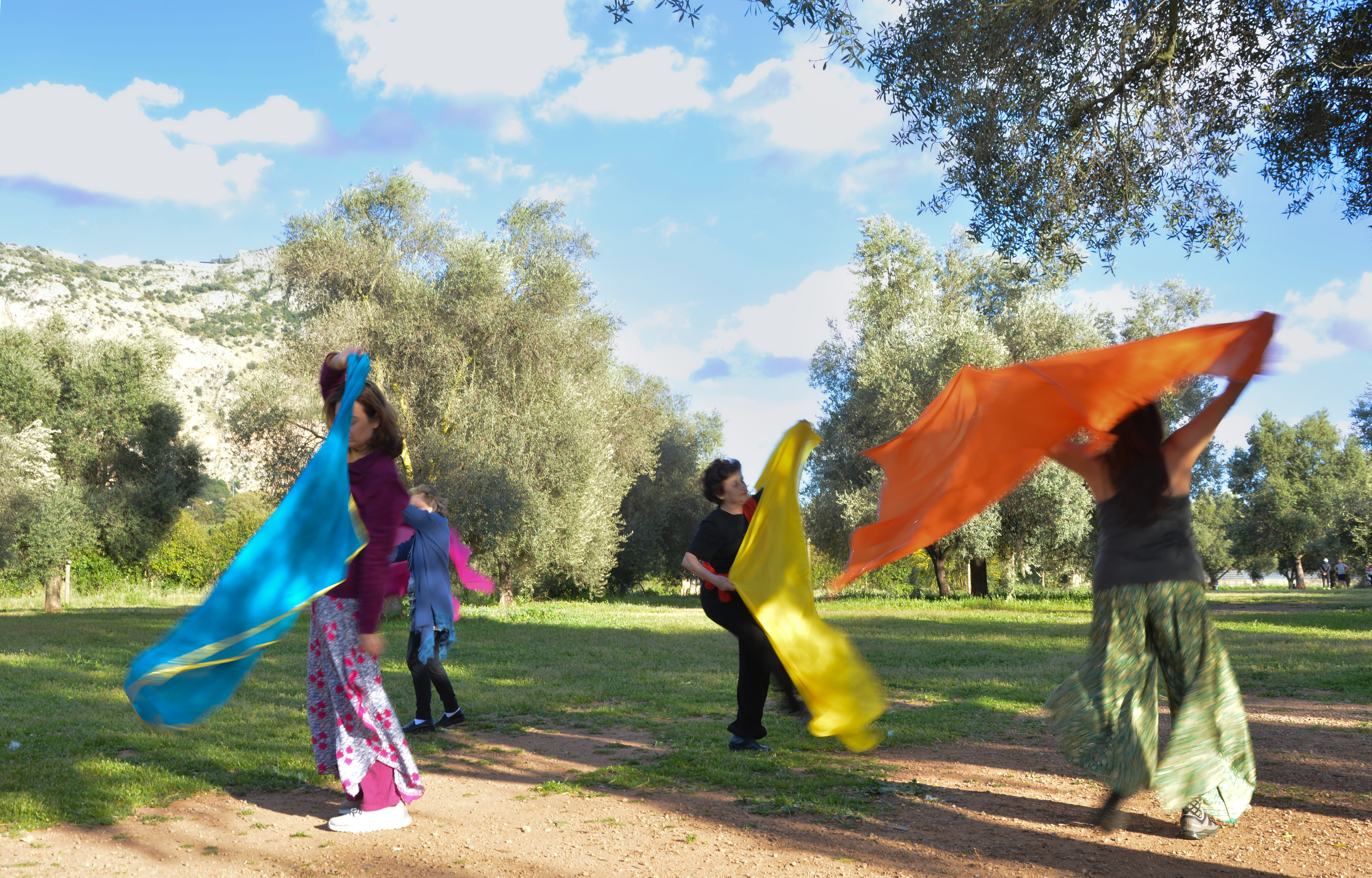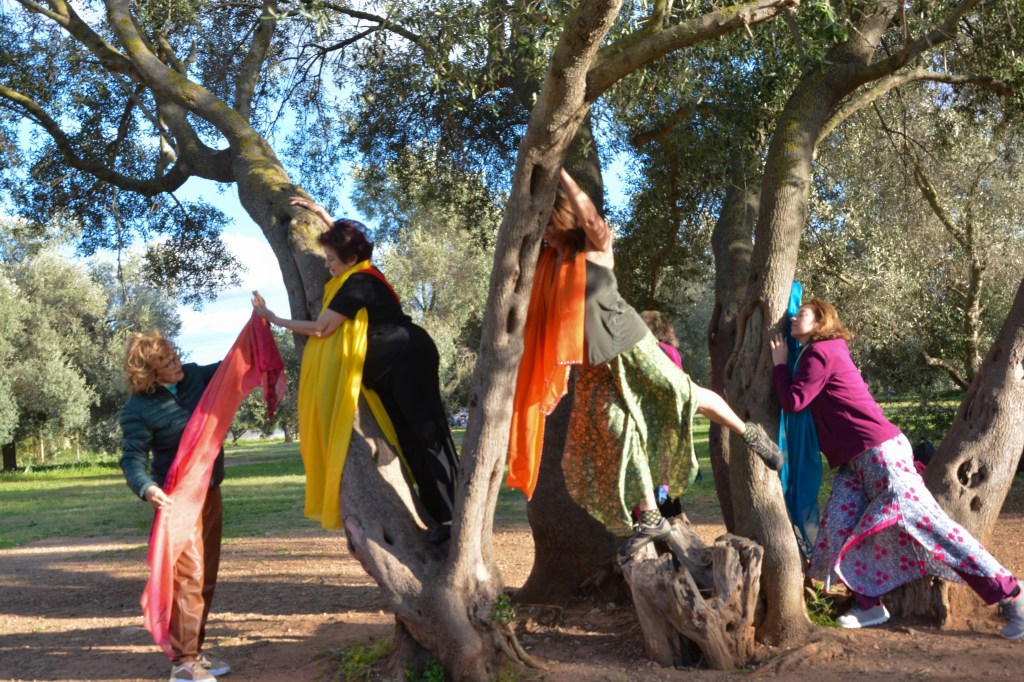 La danza da me coreografata ha richiamato le emozioni vissute durante la pandemia passando dall’isolamento all’abbraccio. La paura, la rabbia, la malinconia, la voglia di vivere e cercare il contatto con le altre persone, con gli affetti più cari e non poterlo fare; sino alla liberazione dell’espressione amorosa e all’abbraccio sincero espresso con una danza libera e, gioiosa e colorata; i veli delle danzatrici si sono via via trasformati da catene e ostacoli ad ali per prendere il volo insieme, in gruppo, grazie alla ritrovata libertà del contatto fisico e amoroso.
