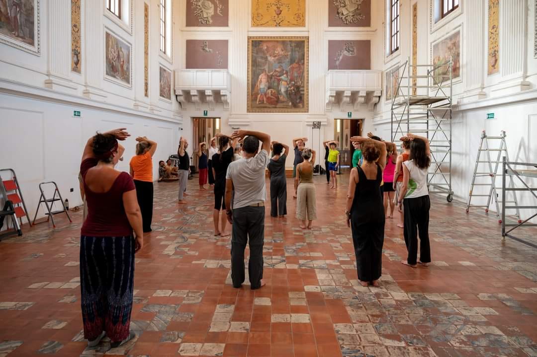 Ho partecipato al laboratorio proposto da Virgilio Sieni presso Palazzo Riso (sala Kounellis) di Palermo su un lavoro che si può considerare il “manifesto” delle sue pratiche: “Solo Goldberg Variations”. Alle 32 variazioni di Bach corrispondono 32 opere d’arte italiane composte tra il 300 e il 600 e il solo è un continuo ripensamento del corpo ad esse ispirato; il laboratorio è stata una ricerca sulle forme di trasmissione, di relazione, un incontrarsi e sentirsi, indagando sulle tattilità del corpo in sinergia con la musica e l’ispirazione pittorica. La ricerca trasmessa e agita su come il gesto di un quadro può arrivate a scuotere l’interiorità, le emozioni e come queste possono essere trasformate in gestualità e in danza. Un continuo cercarsi pur rimanendo centrati, ascoltarsi, pur mantenendo il contatto con la propria interiorità; sino ad arrivare alla performance, dopo soli tre incontri, in cui le sequenze studiate erano solo la base per vivere il presente lanciandosi nell’improvvisazione guidata da Virgilio Sieni direttamente in scena. Palermo è stata quindi apri-pista per una sperimentazione di condivisione che il Maestro ha voluto donare, cedendo parte della sua creazione. Un assaggio di un inizio che merita approfondimento.