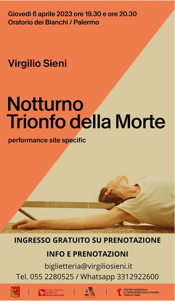 Ho partecipato dal 30 marzo al 6 aprile 2023 al laboratorio di e con Virgilio Sieni sull’affresco Trionfo della Morte di Palazzo Abatellis a Palermo, terminato con una performance site specific all’Oratorio dei Bianchi .
