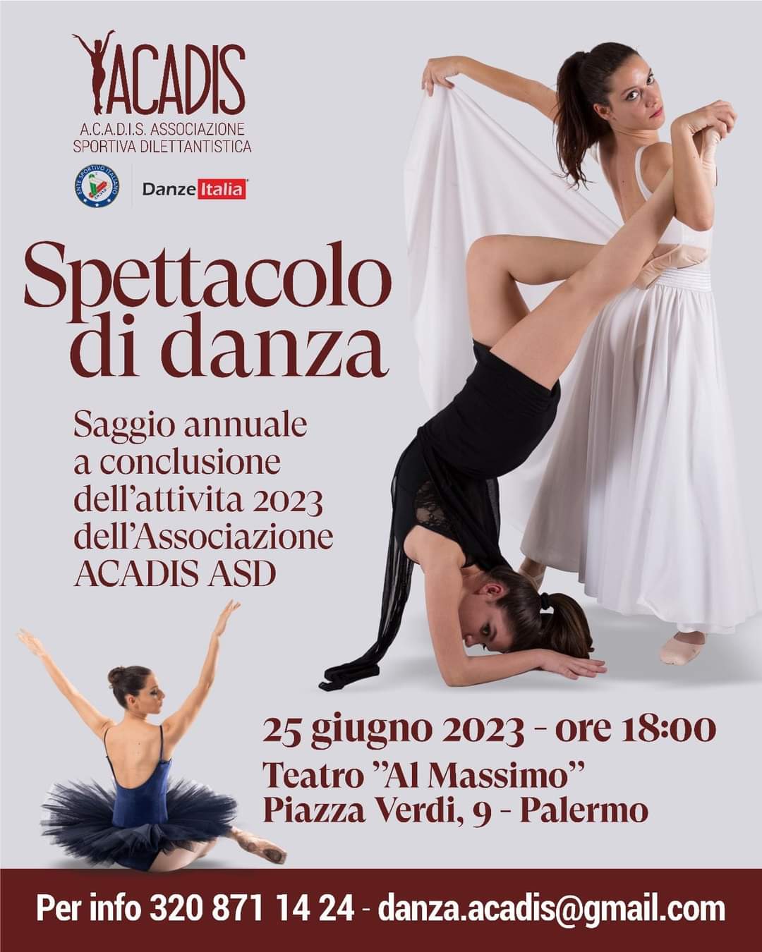 Quest’anno ho deciso di tenermi in forma frequentando il corso di danza classica per adulti diretto da Clara Perrino, Direttrice della scuola ACADIS ASD. Andavo il martedì e giovedì alle 20,30 facendo non pochi sacrifici visto che tornavo a casa verso le 22,00; dall’altro lato quest’orario mi permetteva di avere tutta la giornata libera per potermi dedicare alle altre attività tra scuola, danza del diamante, reiki e famiglia; e poi ne valeva la pena perché appena ero alla sbarra e cominciava la musica classica iniziavo a sognare, a rilassarmi a sentire un’energia positiva scorrere dentro di me. Il corpo diventava via via più elastico e disciplinato, lo spirito più leggero. Tutto potevo immaginare, ma non che la Direttrice Clara chiedesse anche a noi adulte di partecipare al saggio/spettacolo. Ho accettato la sfida .. nella mia vita ho ballato spesso in pubblico; 30 anni fa ho cominciato con i saggi di Danza contemporanea di Cinzia Cona per poi passare agli spettacoli e all’insegnamento di danza del Diamante con numerose performance anche davanti a personaggi importanti delle istituzioni. Ma saggi di danza classica non ne avevo mai fatti..