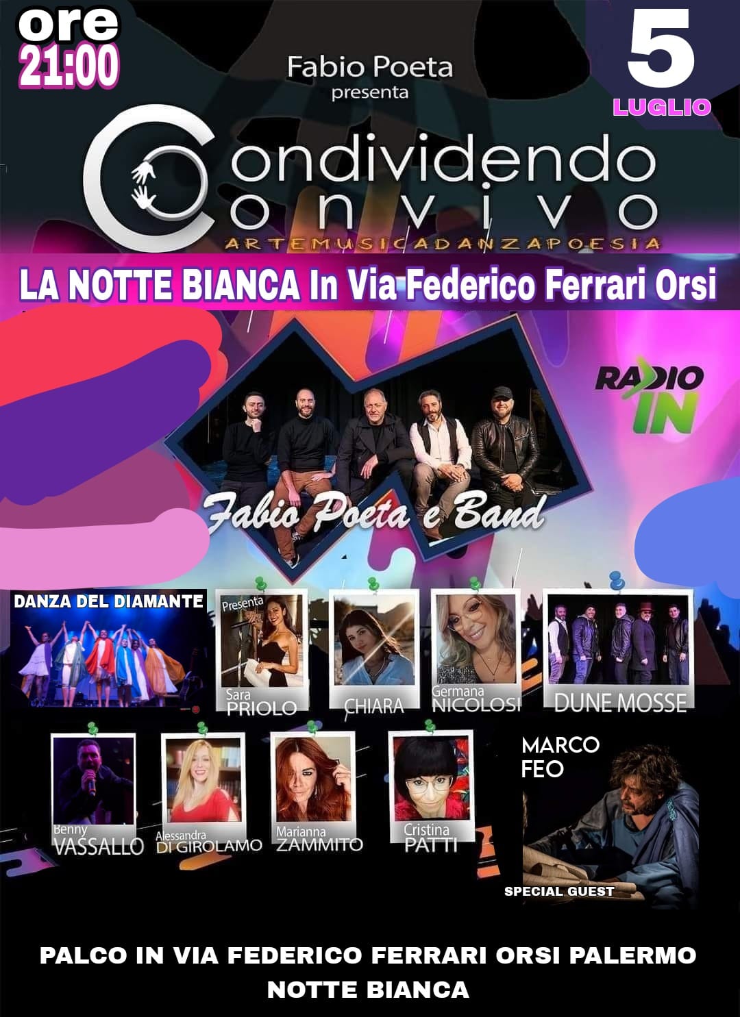 Ancora una volta la danza del Diamante a Condividendo Convivo 2023, diretto da Fabio Poeta, stavolta all’interno dell’evento “La Notte bianca di Via Federico Ferrari Orsi” organizzato dall’Amministrazione Comunale di Palermo che con esso ha valorizzato un intero quartiere (Settecannoli) alimentando la cultura ed anche l’economia dei negozi aperti giorno e notte.