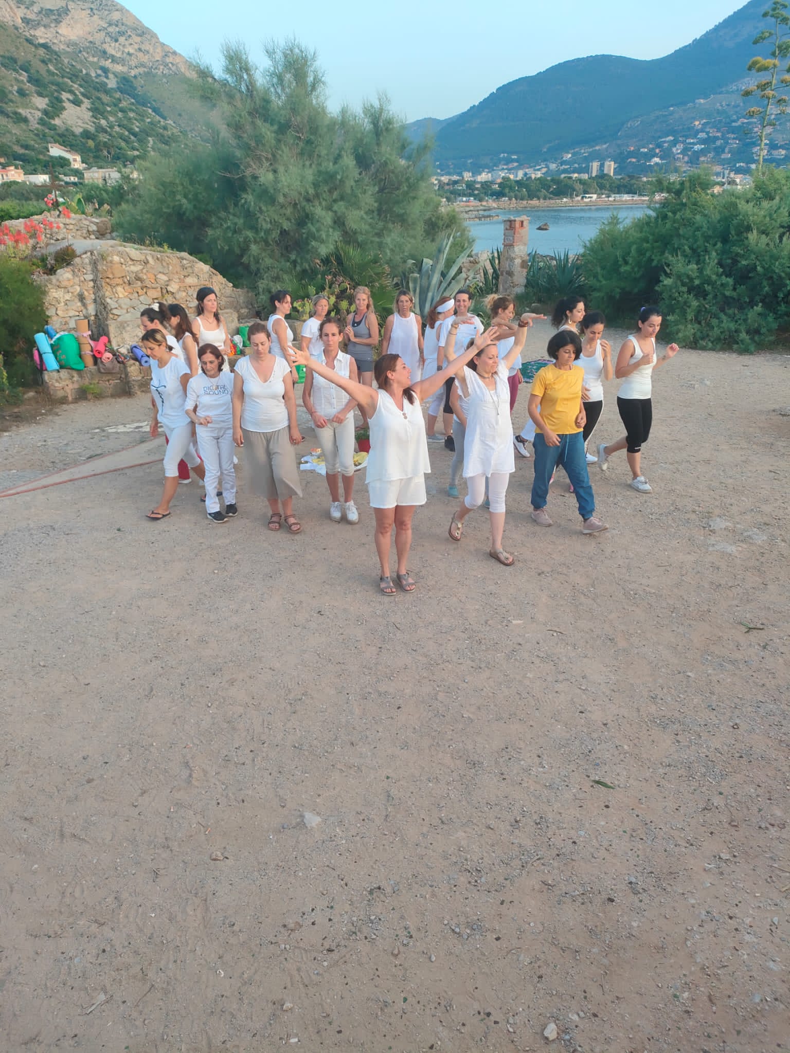 In occasione del Solstizio d’estate sono stata invitata da Chiara Pantaleone a partecipare, con la Danza del Diamante, all’evento “International Yoga Day” nel del piccolo anfiteatro del villaggio dei Trulli a punta Barcarello (Sferracavallo). Tra Yoga e Danza abbiamo celebrato il Sole, fonte di Vita e per dirla come San Francesco