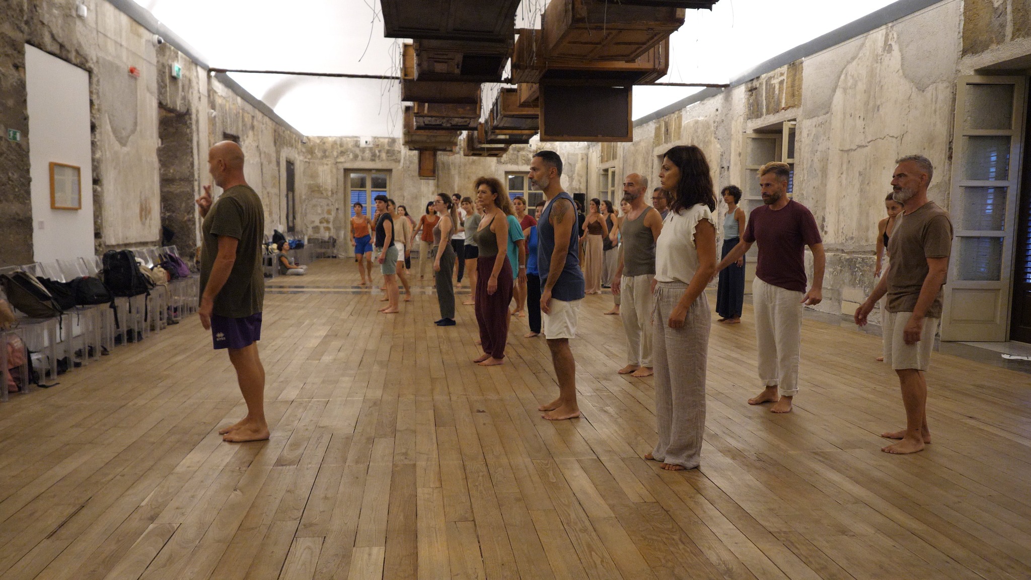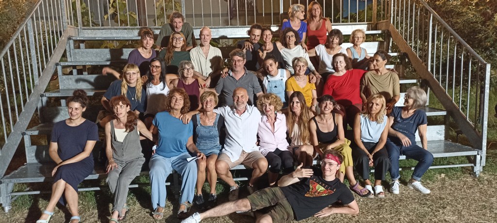 E’ stata un’esperienza fantastica, un esercizio costante di ascolto e attesa dell’altro. Mentre di solito, quando si danza in gruppo, è la musica che dà le indicazioni sul tempo da rispettare, in questo lavoro di Virgilio Sieni il tempo dei movimenti era dettato dall’essere insieme del gruppo stesso; al contrario la musica seguiva e dava una suggestione. La richiesta costante è stata quella di attendere che anche l’ultimo fosse con noi, di sentire il movimento del gruppo e non del singolo, di non correre ma osservare gli altri, relazionarsi, guardare, toccare, se necessario, per fare avvertire la nostra presenza e aiutarli a rialzarsi. Un richiamo costante al senso di comunità, di unione, di solidarietà. Non eri più bravo se arrivavi primo, se anticipavi il movimento facendo capire che conoscevi la sequenza meglio degli altri, se parlavi per suggerire.. No. Tutta la comunicazione doveva essere solo Non-verbale; era lo sguardo o il movimento a parlare, a suggerire. In questo modo emergeva la relazione, andando oltre le individualità. Emergeva il gruppo, con inclusione del singolo, con valorizzazione delle differenze e delle peculiarità di ognuno.