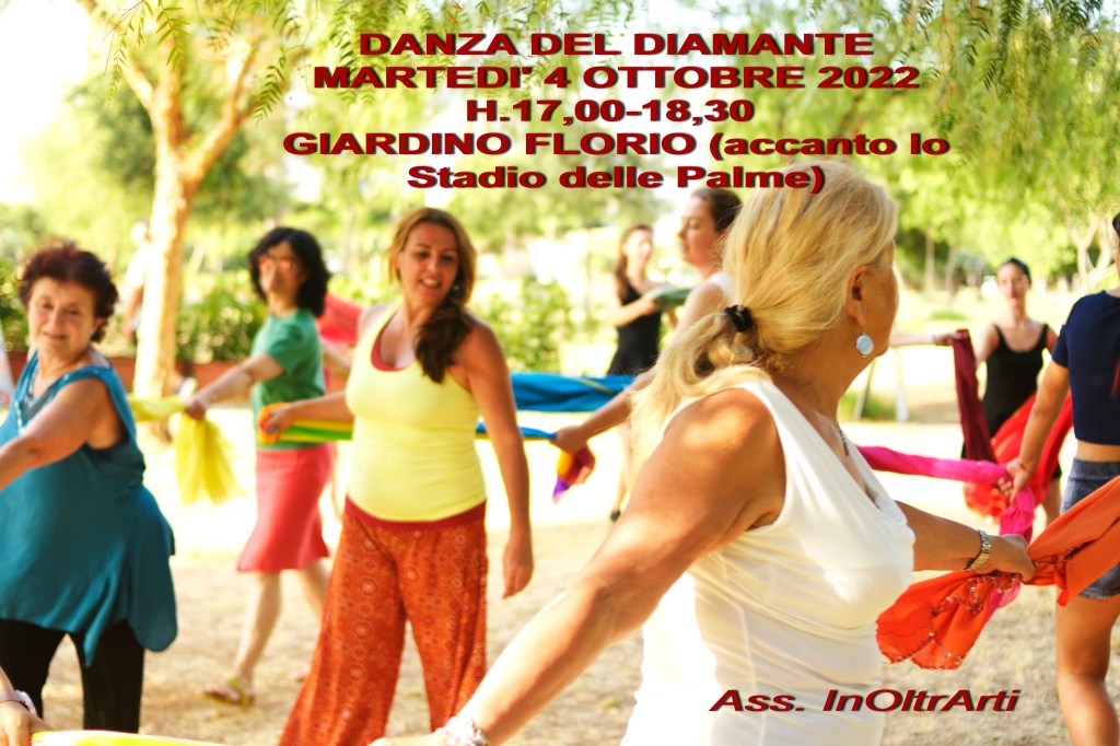Gli incontri di Danza del Diamante riprendono martedì 4 ottobre 2022 dalle ore 17,00 alle ore 18,30 presso il Giardino Florio (accanto lo stadio delle Palme).